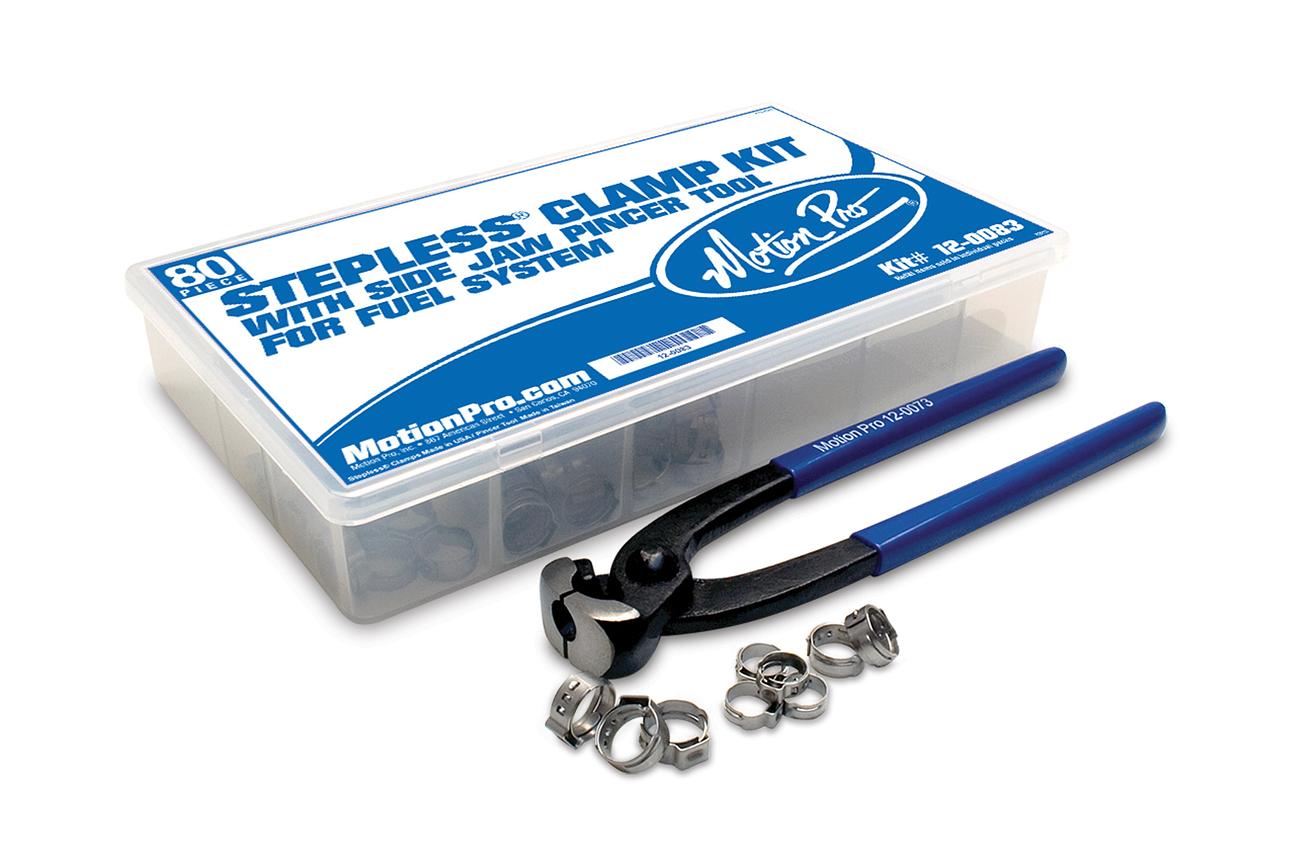 - Convenient kit includes 80 pcs of hardware, a Motion Pro Side Jaw Pincer tool, and a convenient fuel line clamp size chart
